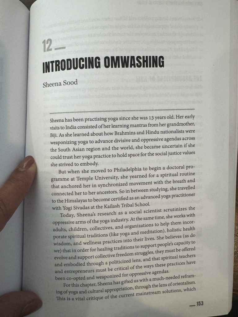 Sood, Sheena. 2024. “Introducing Omwashing,” The Yoga Teacher’s Survival Guide: Social Justice, Science, Politics and Power. Edited by Theo Wildcroft and Harriet McAtee. Singing Dragon: United Kingdom.